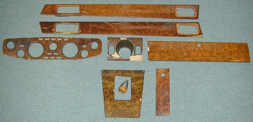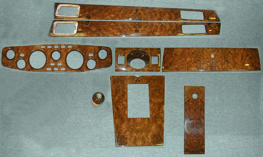 The stock dash and trim set (above left) came in Burled Walnut. The "Prince of Wales" edition (above right) came in Carpathian Elm Burl. We can Reveneer your Aston Martin Woodwork in Carpathian Elm Burl or another gorgeous veneer. You can find veneer choices at the bottom of this page. |